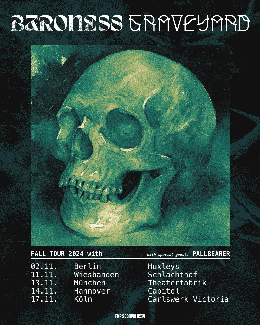 Ein Paket wie aus dem Bilderbuch: Die Grammy nominierten US-Heavy/Psych-Rocker Baroness gehen gemeinsam mit den Göteborger Rockern von Graveyard auf Tour. Mit im Gepäck haben sie Pallbearer als Special Guests. Baroness, auf deren Rückkehr in unsere Gemäuer wir seit 9 Jahren mit Spannung warten, stellen uns heuer ihr letztes Jahr erschienenes sechstes Album „Stone“ vor, ein zwischen Nachdenklichkeit und Groove wahnsinnig rockendes Werk. Graveyard, die ihr ebenfalls sechstes, schlicht „6“ betiteltes Album im Gepäck haben, ein sanft federnder, psychedelischer Ritt auf Stoner-Gitarren und Hammond-Orgeln, möchten wir an dieser Stelle als die ewig zeitlose Lederjacke des Rock’n’Rolls bezeichnen und mindestens genauso herzlich willkommen heißen. Genau so wie Pallbearer aus Little Rock natürlich, der vielleicht denkbar beste Special Guest für den heutigen Abend. Sie stellen uns ihr im Mai veröffentlichtes brandneues Album „Mind Burns Alive” vor.