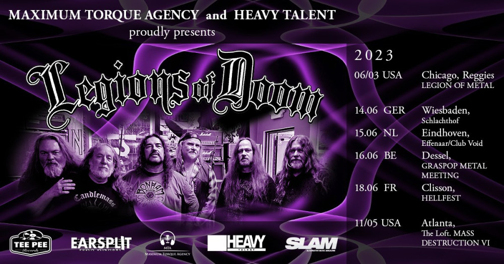 Auch Gitarrist Lothar Keller (Sacred Dawn) und Schlagzeuger Henry Vasquez (Saint Vitus/Blood of the Sun/ Spirit Caravan) waren schnell von der Idee angetan und beschlossen, noch weitere Freunde an Bord zu bitten. So kommt es, dass mit Scott Reagers (Saint Vitus) noch eine weitere legendäre Stimme Teil der Legion geworden ist - und last not least auch Riff Master General, Gitarrist Victor Griffin (Death Row, Pentagram, Place of Skulls) ins Lineup kooptiert wurde. Und so kommt es, dass Legion Of Doom unversehens zu einer Art Supergropup des Doom Metal geworden sind. Der helle Wahnsinn, live, heute, hier.