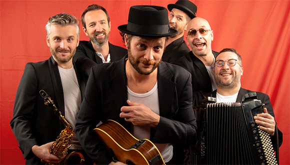 2006 von Benoît Savard und Guillaume Jousselin gegründet, entwickelten sich Les Yeux D’La Tête schnell zu einem abenteuerlich instrumentierten Quintett um Bass, Schlagzeug, Percussion, Kontrabass, Altsaxophon, Sopran, Akkordeon, Trompete, Akustik- und E-Gitarre – und zu einer festen Größe auf den Bühnen Frankreichs. Der internationale Durchbruch gelang 2016 mit dem Album „Liberté Chérie“ und einer anschließenden mehr als 150 Konzerte umfassenden Tour mit alleine 25 Stopps in Deutschland. Wir wissen das, wir waren dabei. Der musikalische Horizont der Musiker erstreckt sich vom Chanson bis zum Sinti-Swing, er greift Balkanbeats und Walzer auf, vermischt Folk mit Rock, und erzählt eindrucksvoll von Themen des Alltags – von Liebe, Freude und Spaß am Feiern - und überhaupt von all dem Verrückten, das uns das draußen täglich begegnet. Zuletzt meldete sich das Quintett mit einem Live-Album zurück, das es anlässlich seines 15-jährigen Band-Jubiläums auf Deutschland-Tour aufgenommen hat. Nur wenige französische Bands sind auf der dieser Seite des Rheins so erfolgreich, und so klingt auch dieses Album wie eine Hommage an die Liebesgeschichte zwischen ihren Pariser Wurzeln und dem schönen deutschen Abenteuer, die sie seit so vielen Jahren erleben dürfen. Außerdem bot sich so natürlich die Gelegenheit, die besten Stücke ihrer Diskografie in einem einzigen Werk zu vereinen – und natürlich heute hier live live darzubieten!