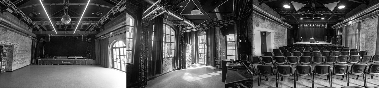 Fläche: 98qm (ohne Bühne) zzgl. Nebenraum 18qm